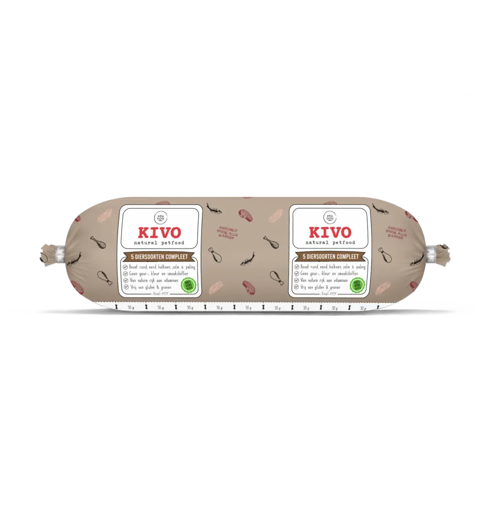 – 20% orgaanvlees: runderpens, rundernier, rundermilt, runderlong, runderlever, eendenhart, eendenniertjes.