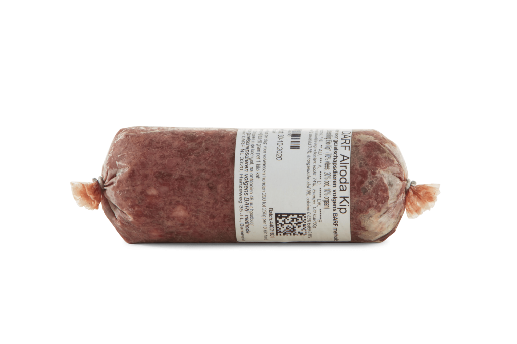 Alroda producten bevatten steeds één diersoort. De rolletjes zijn van 245 gram en geschikt voor hond en kat.