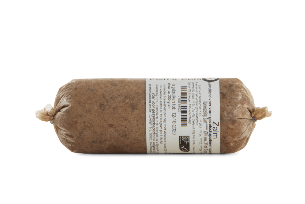 In de Alroda Zalm zit puur en alleen zalm, in handige worstjes van 245 gram. Geschikt voor zowel honden als katten.