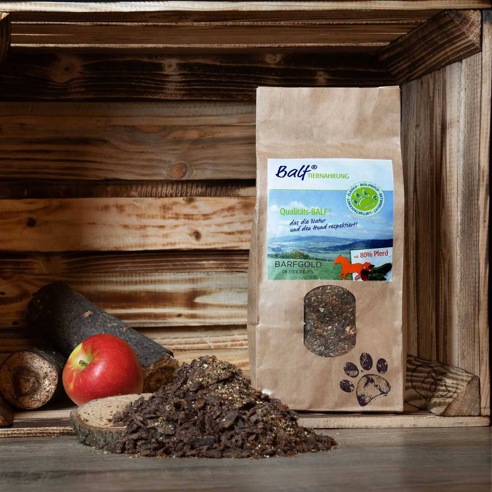 800 g paard, luchtgedroogd spiervlees 400 g, schenkel 160 g, long 90 g, lever 90 g, hart 30 g, tong 30 g,