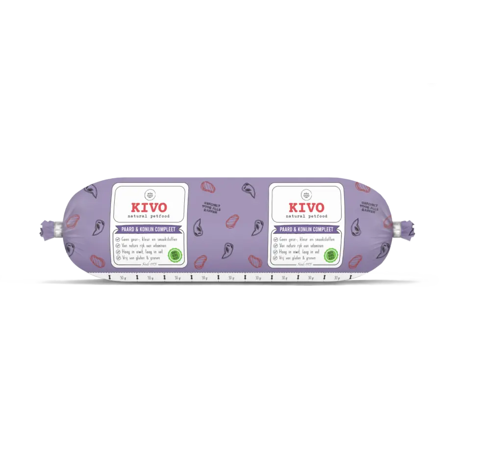 Deze maaltijd bestaat voor 80% uit vers paardenvlees en voor 20% uit vers konijnenvlees.
