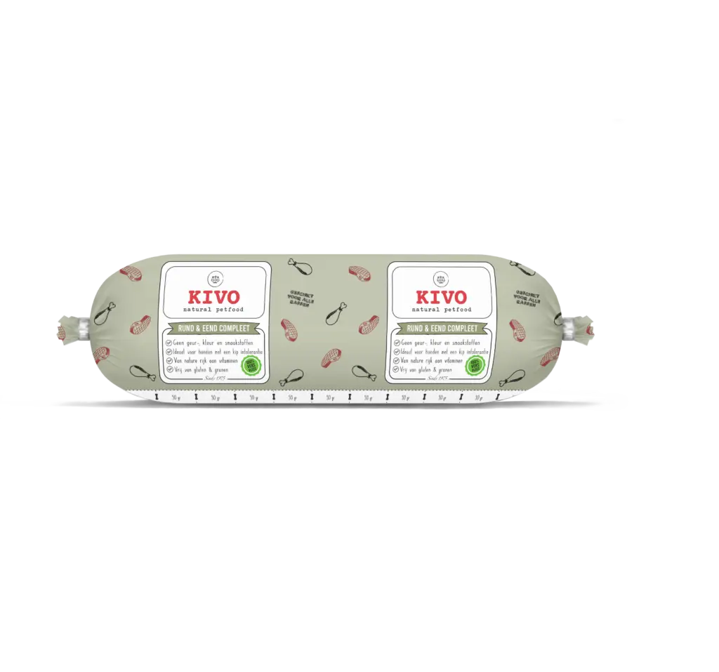 – 20% orgaanvlees: runderlever, rundermilt, rundernier, runderlong, runderpens, eendenhart, eendenniertjes.